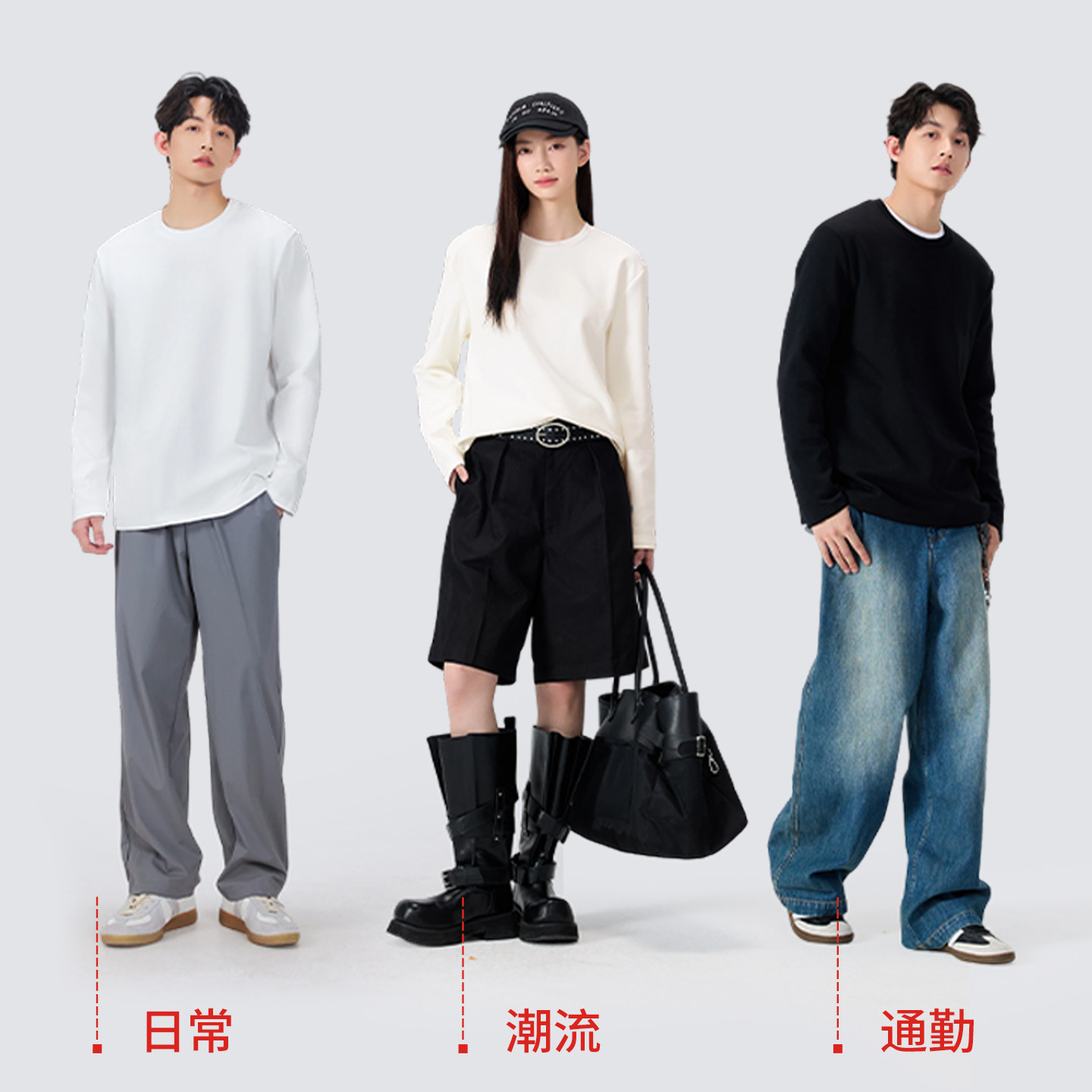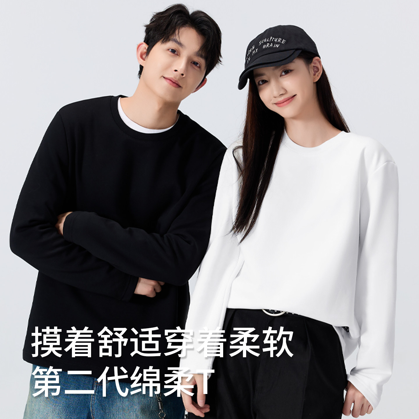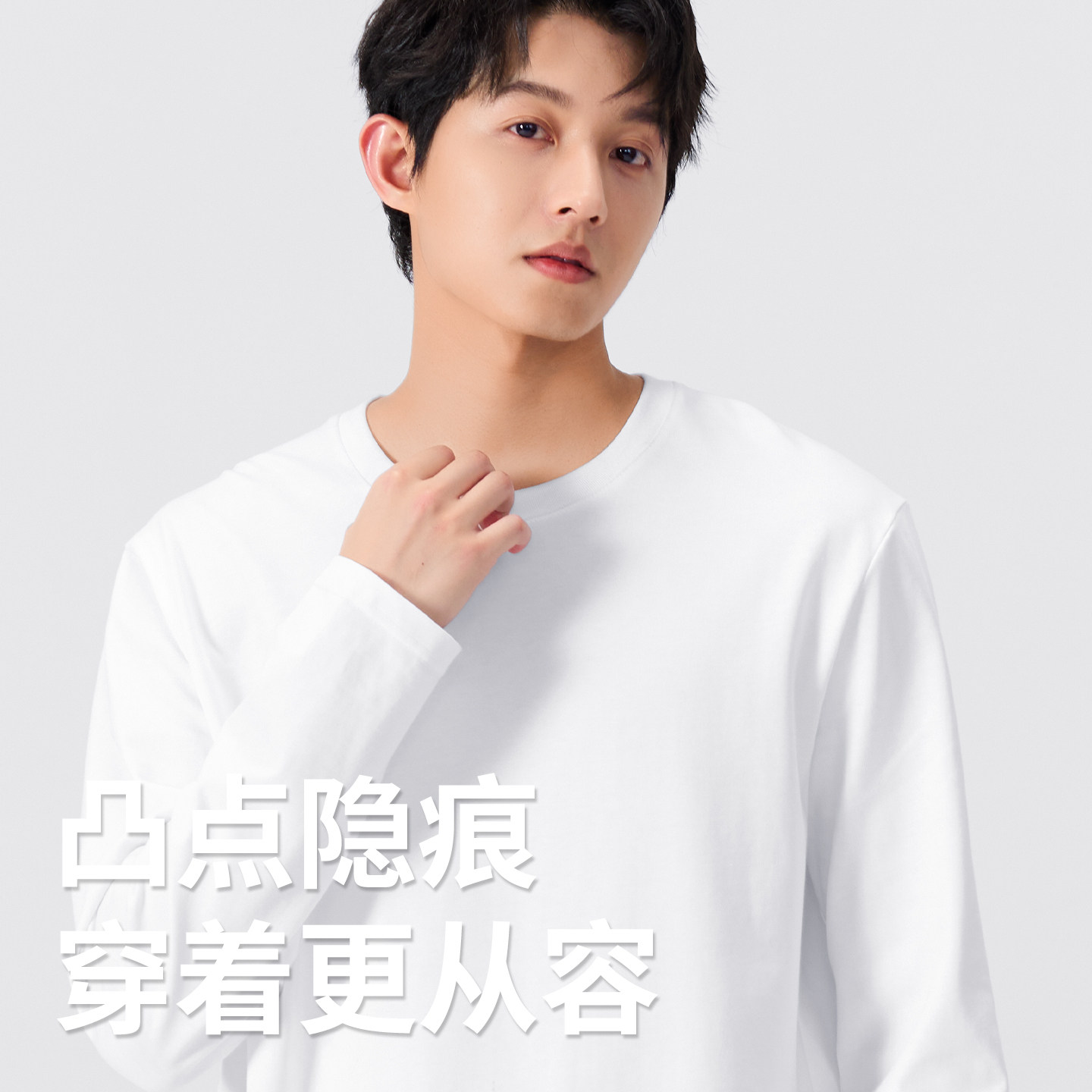 新疆棉内搭纯白衣服卫衣Y 春秋纯棉白色打底衫 名创优品长袖 t恤男款