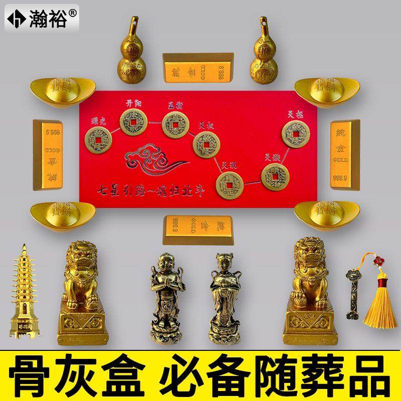 高档陪葬品骨灰盒随葬品墓穴下葬组合摆件全套守灵狮金元 宝金砖