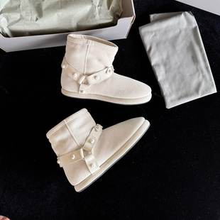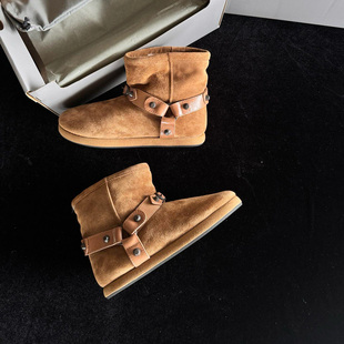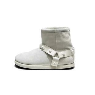 厚底防滑短筒马丁靴女 加绒加厚保暖棉鞋 复古真皮雪地靴女新款 冬季