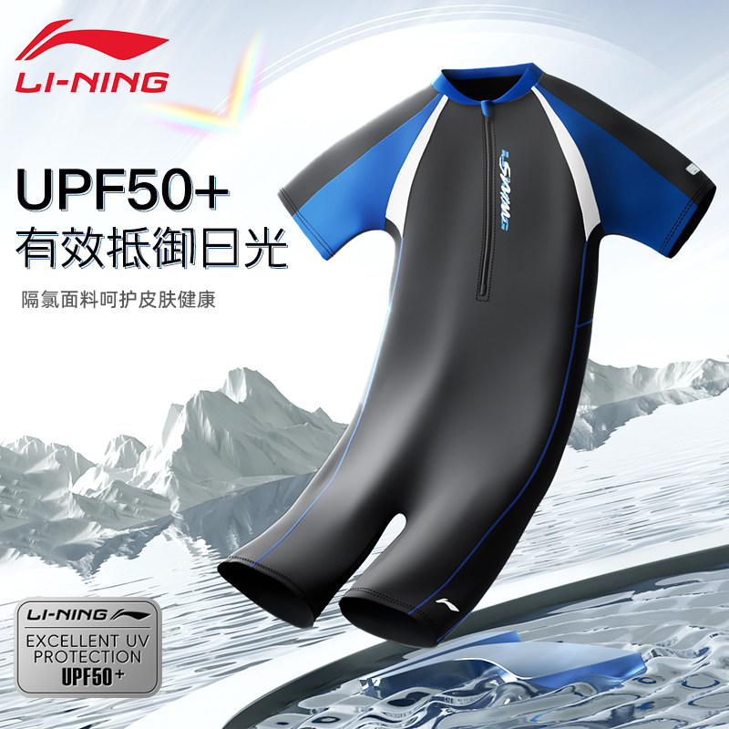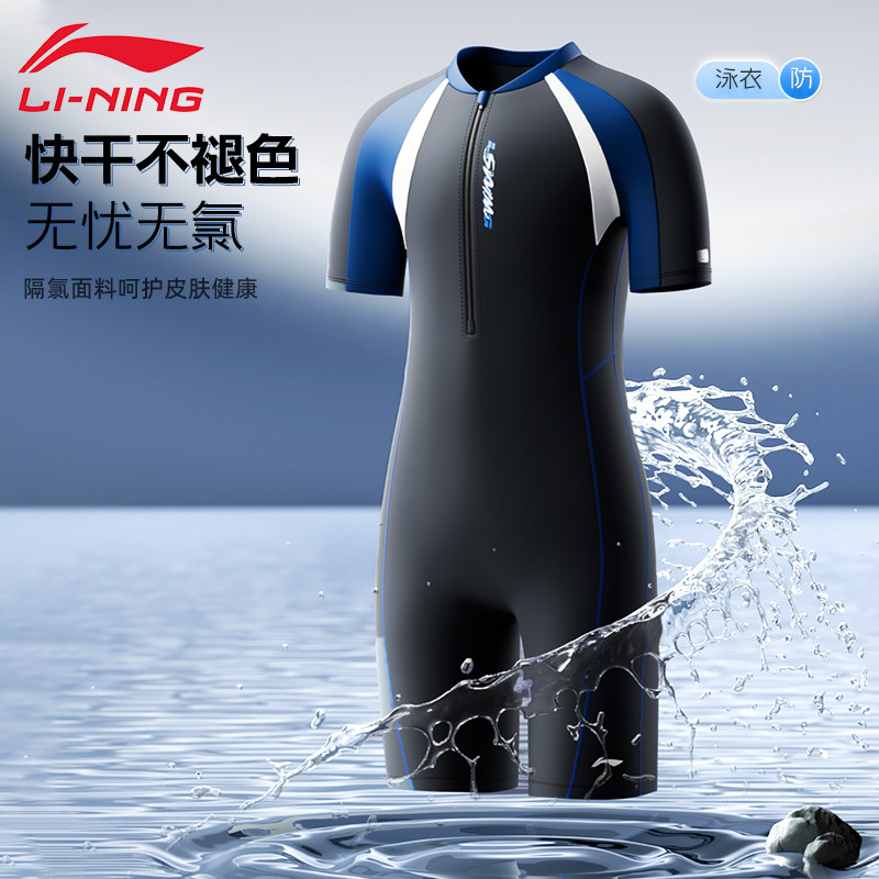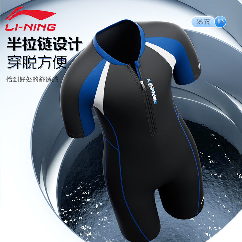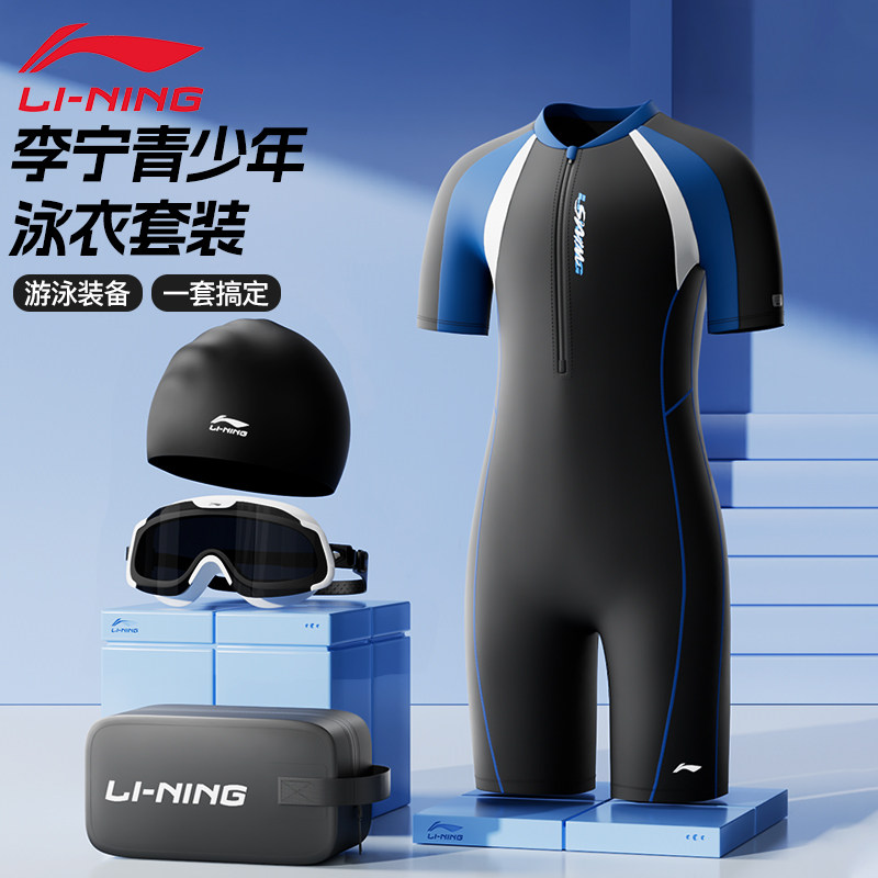 青少年男孩初中学生考大童专业用竞速套装 款 男士 李宁连体游泳衣裤