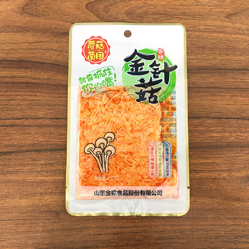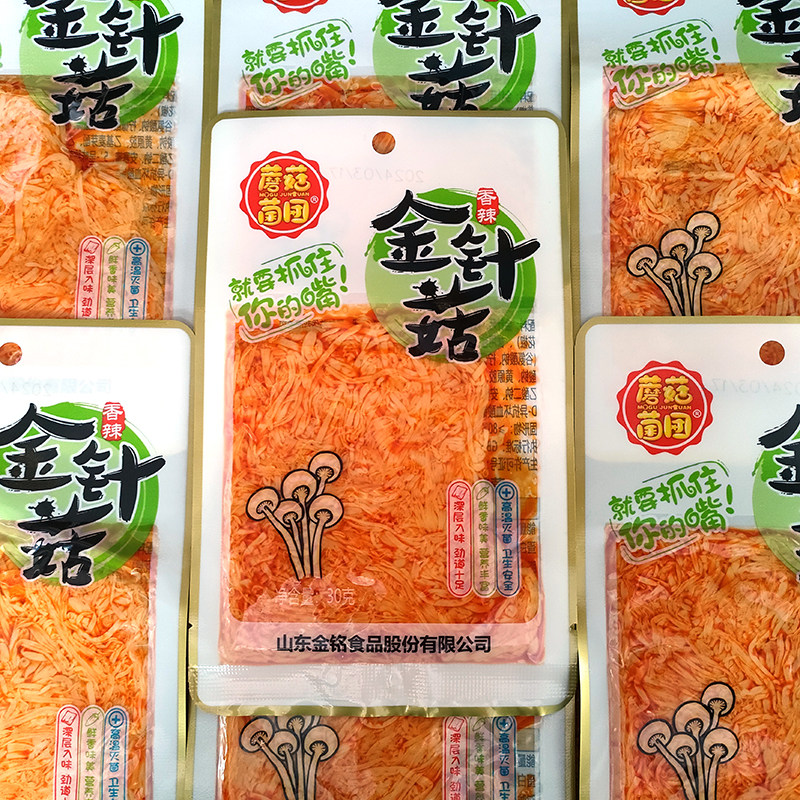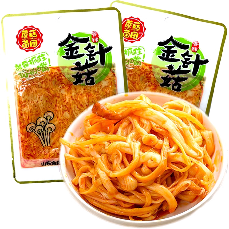 新日期蘑菇菌团金针菇小包装 网红香辣红油金针菇开袋即食下饭菜