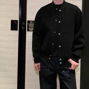 复古宽松翻领黑色外套女装 时尚 846474 秋季 三福皮衣夹克2025新款