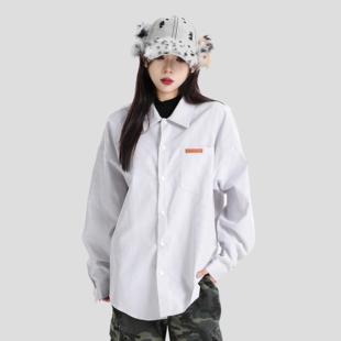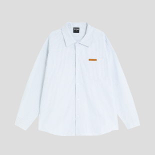 宽松长袖 小皮标LOGO条纹衬衫 衬衣外套 国潮牌情侣美式 INSstudios