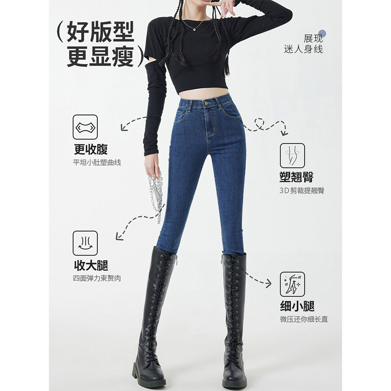 弹力显瘦秋冬加绒铅笔小脚裤 修身 女春秋2025年新款 高腰紧身牛仔裤