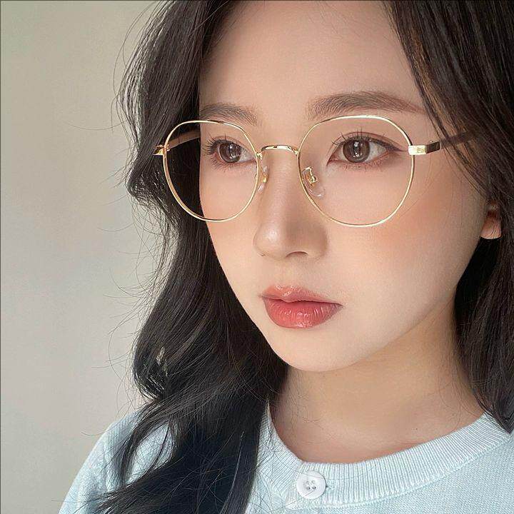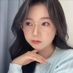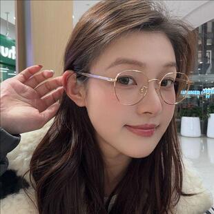 韩系显白奶茶色眼镜框女可配近视度数素颜文艺小圆框金丝眼睛镜架
