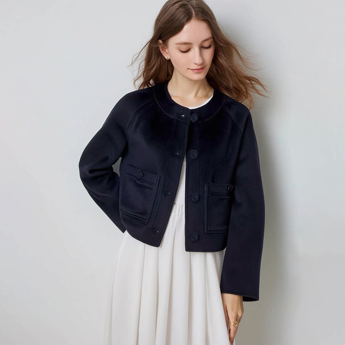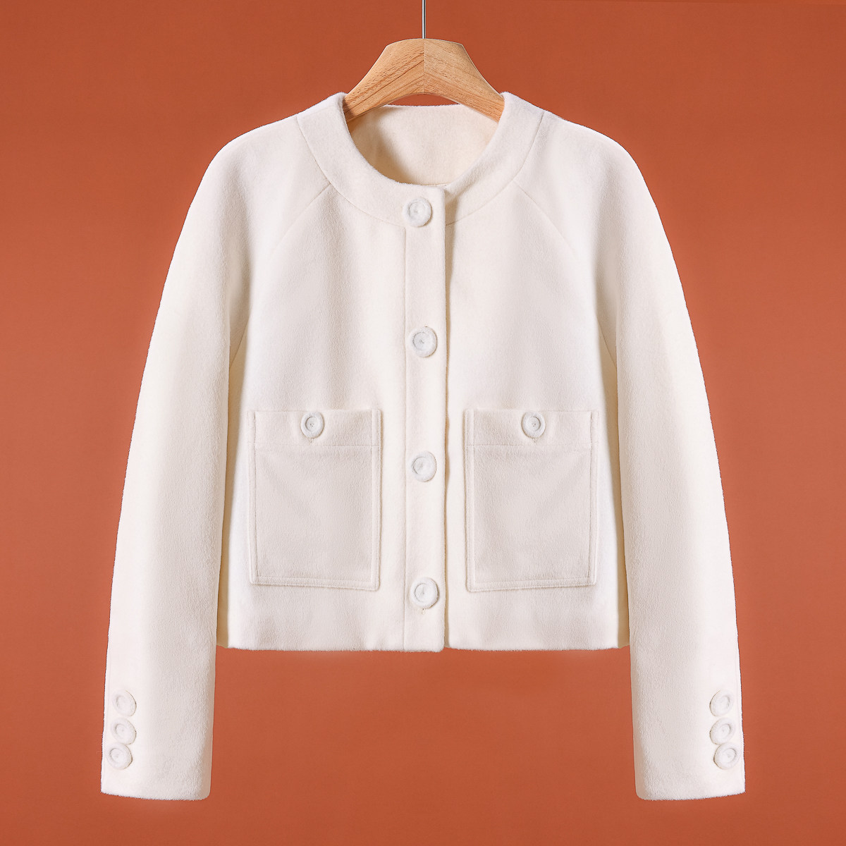 纯色圆领单排扣夹棉短款 韩货冬装 毛呢外套711 西湖阁老