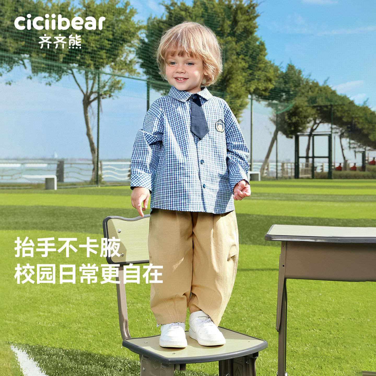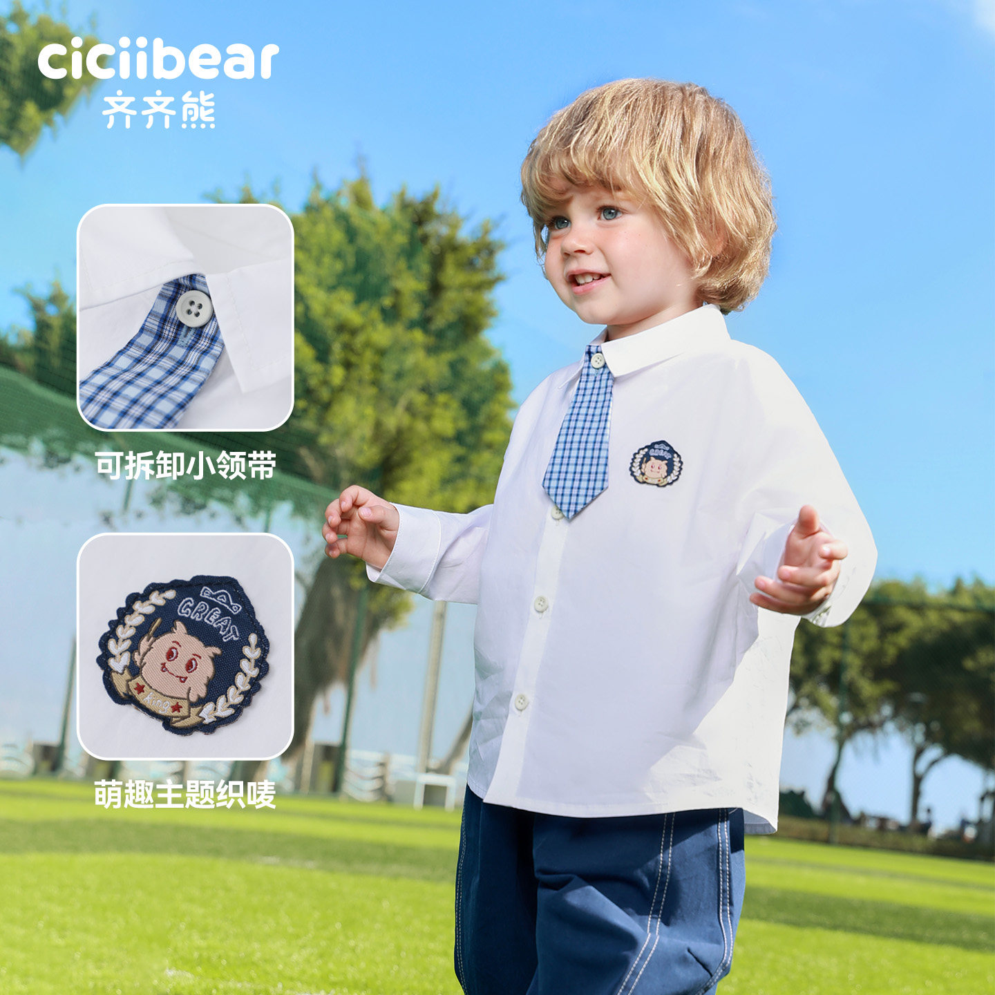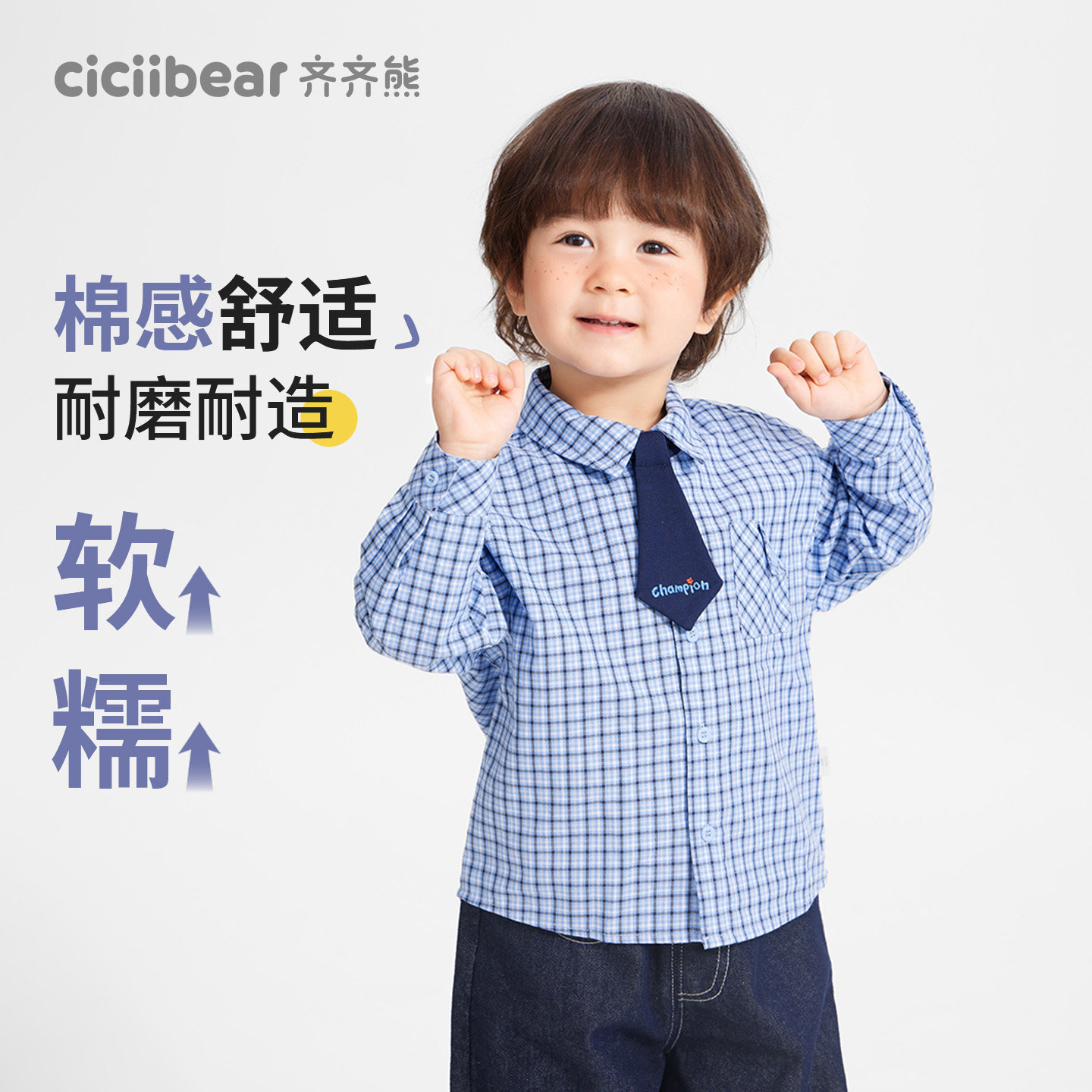 外套儿童长袖 男童春装 齐齐熊宝宝格子衬衫 纯棉衬衣上衣 萌芽学者