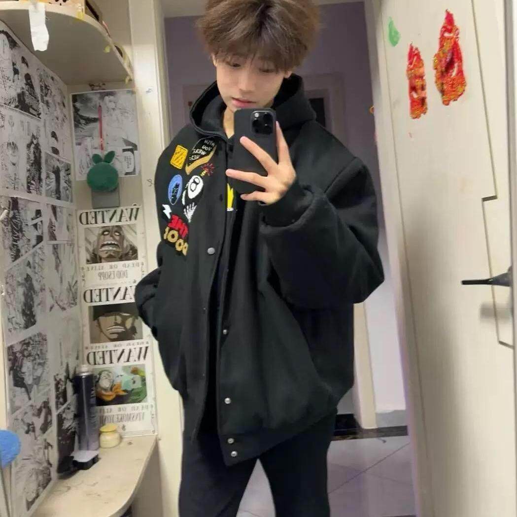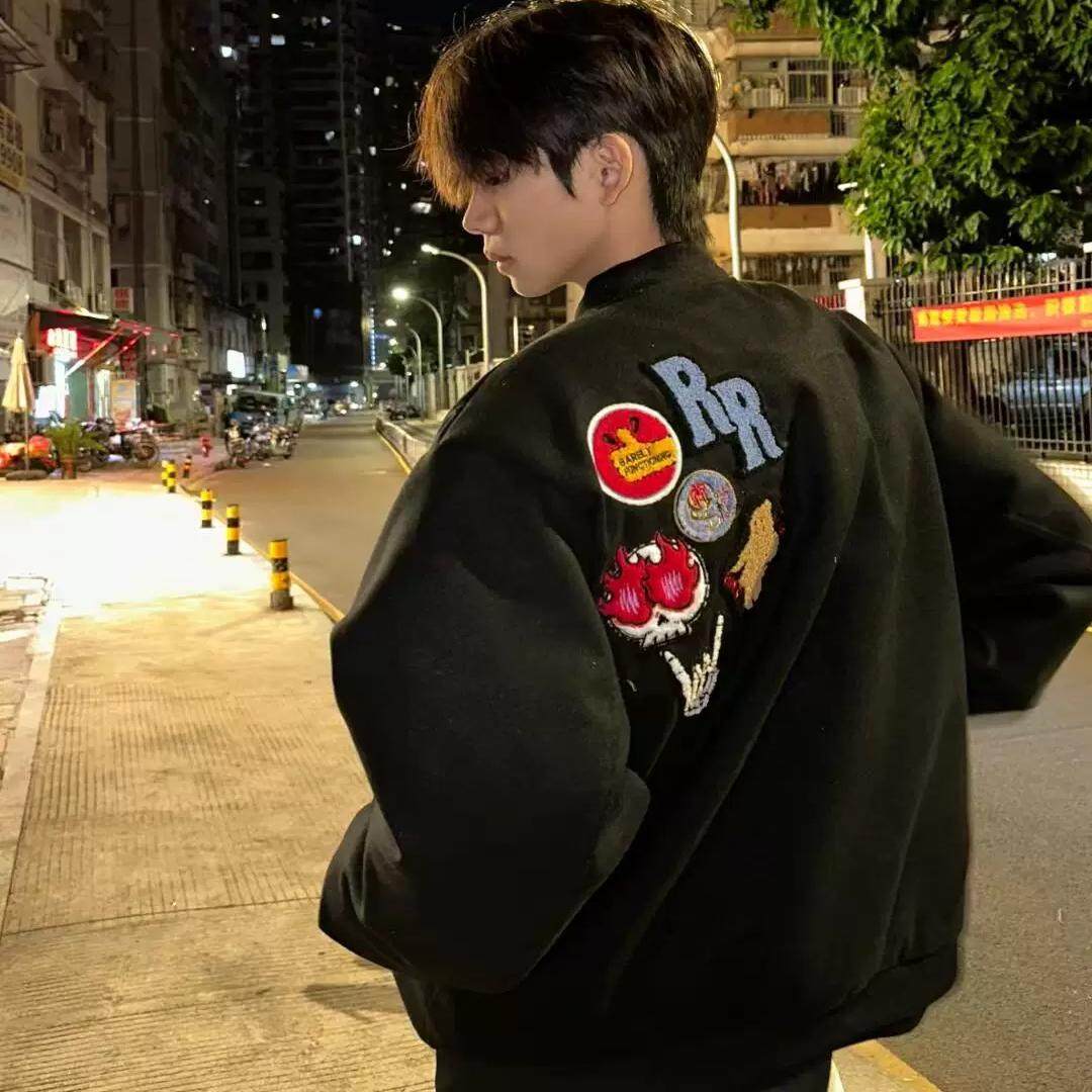 型vibe皮袖 NOVACAM cleanfit版 短款 加厚棉服棒球夹克外套 复古美式