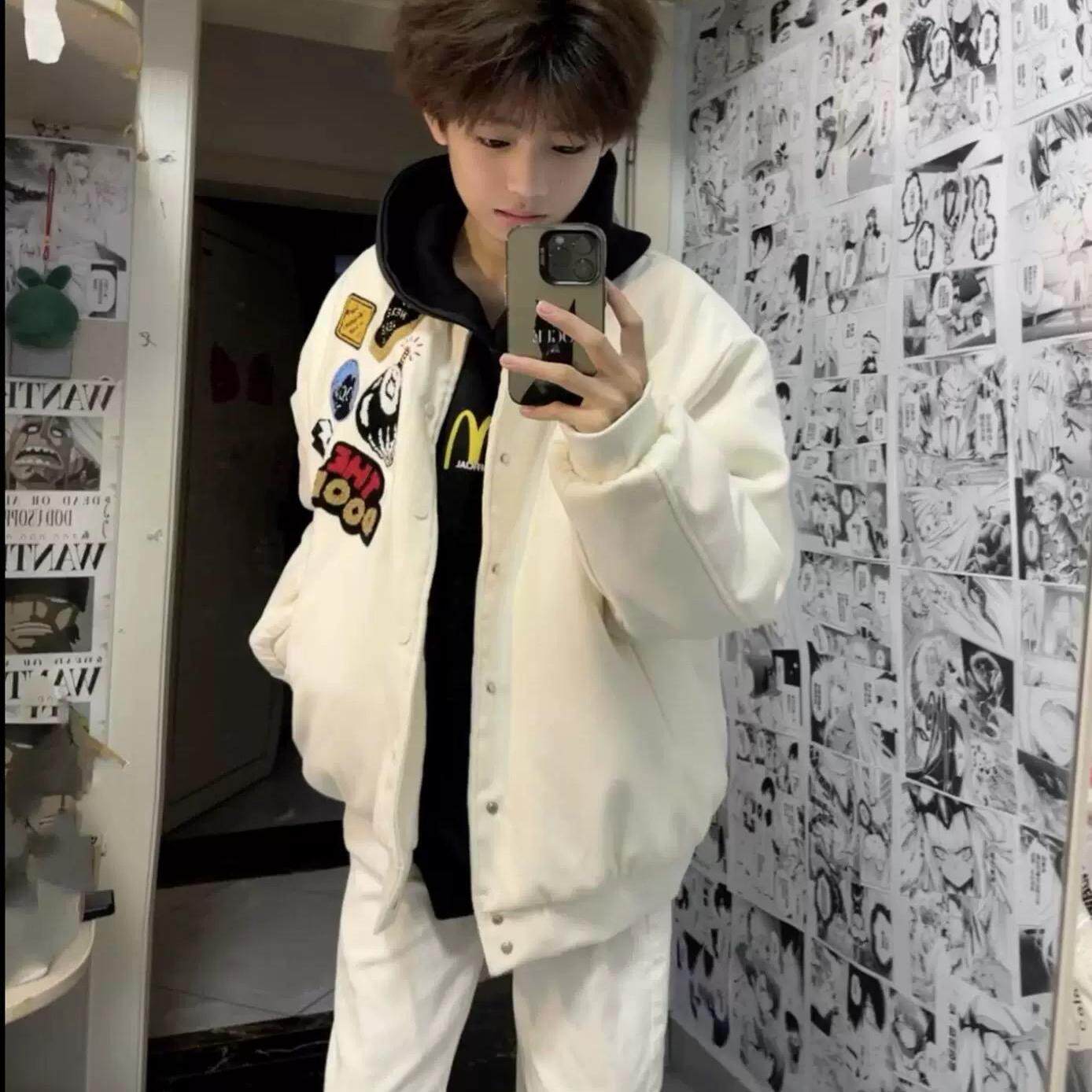 春秋季 牛仔外套男青少年秋冬宽松褂子初高中学生加绒加厚夹克 时尚
