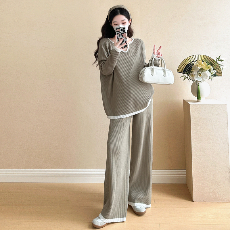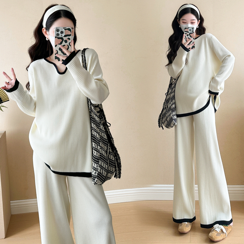 套装 假两件上衣阔腿长裤 2025春秋款 外穿宽松长袖 两件套 新款 孕妇装