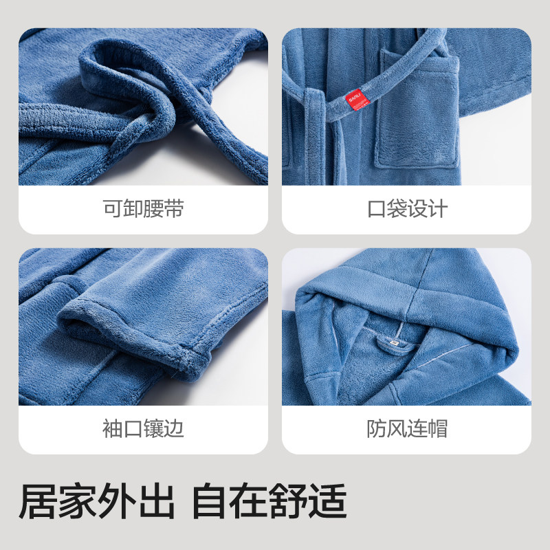 三利浴袍女吸水速干冬珊瑚绒浴巾式 男情侣酒店浴巾睡袍长 加厚冬款