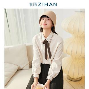 森系学院风打底宽松简约小个子上衣可单穿潮 女秋冬季 紫涵长袖 衬衫