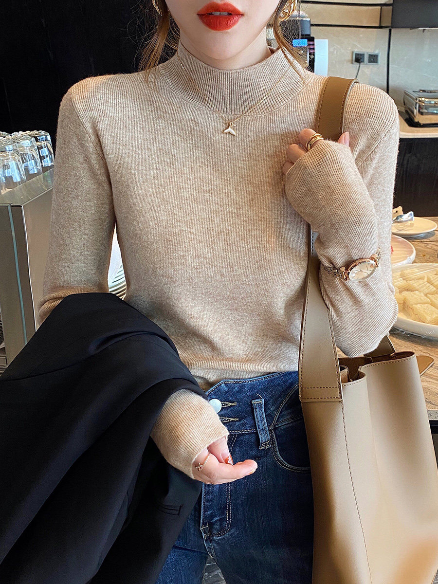 保暖洋气内搭长袖 秋冬新款 软糯修身 胖MM半高领针织打底衫 毛衣 大码