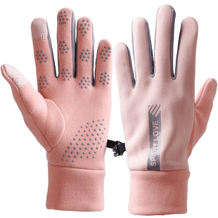 ELLE毛绒手套女士秋冬季 加绒户外保暖仿麂皮绒分指可触屏开车骑行