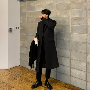 过膝无羊绒呢子风衣外套韩版 毛呢大衣男中长款 宽松落肩 新款 秋冬季