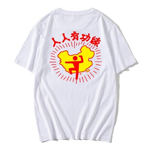 香港电影破坏之王周星驰同款 人人有功练纯棉T恤男女武术衣服 短袖