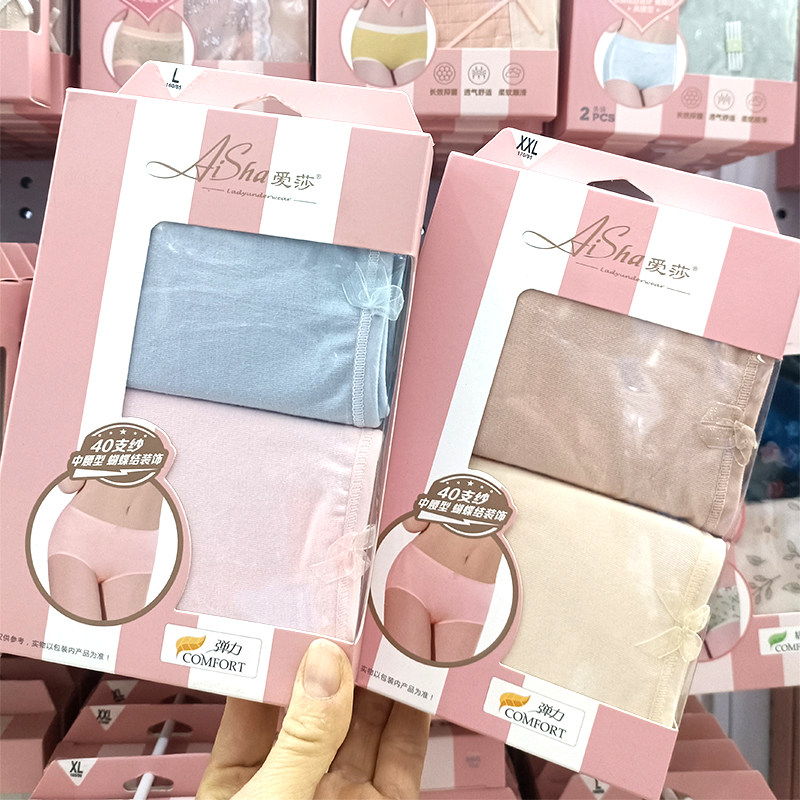 简约女底裤 中腰纯色小平角内裤 女士纯棉95%棉质三角内裤 爱莎正品