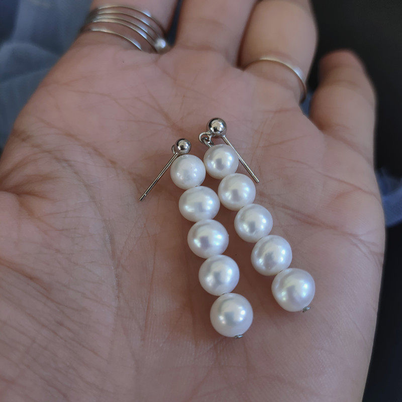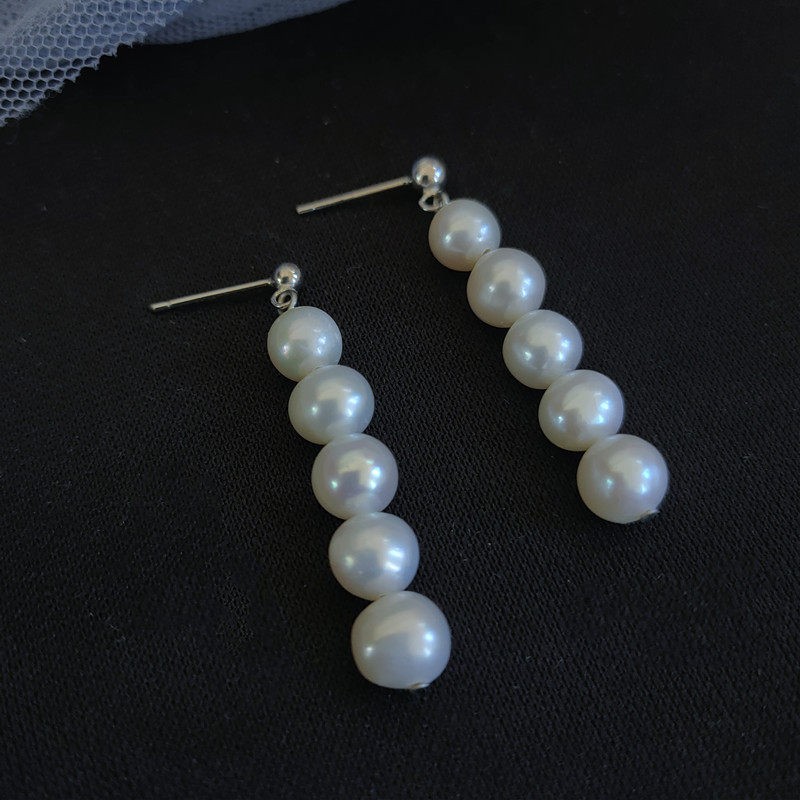 天然淡水珍珠耳钉6A级极强光媲美日本akoya海水珠耳饰925纯银耳环