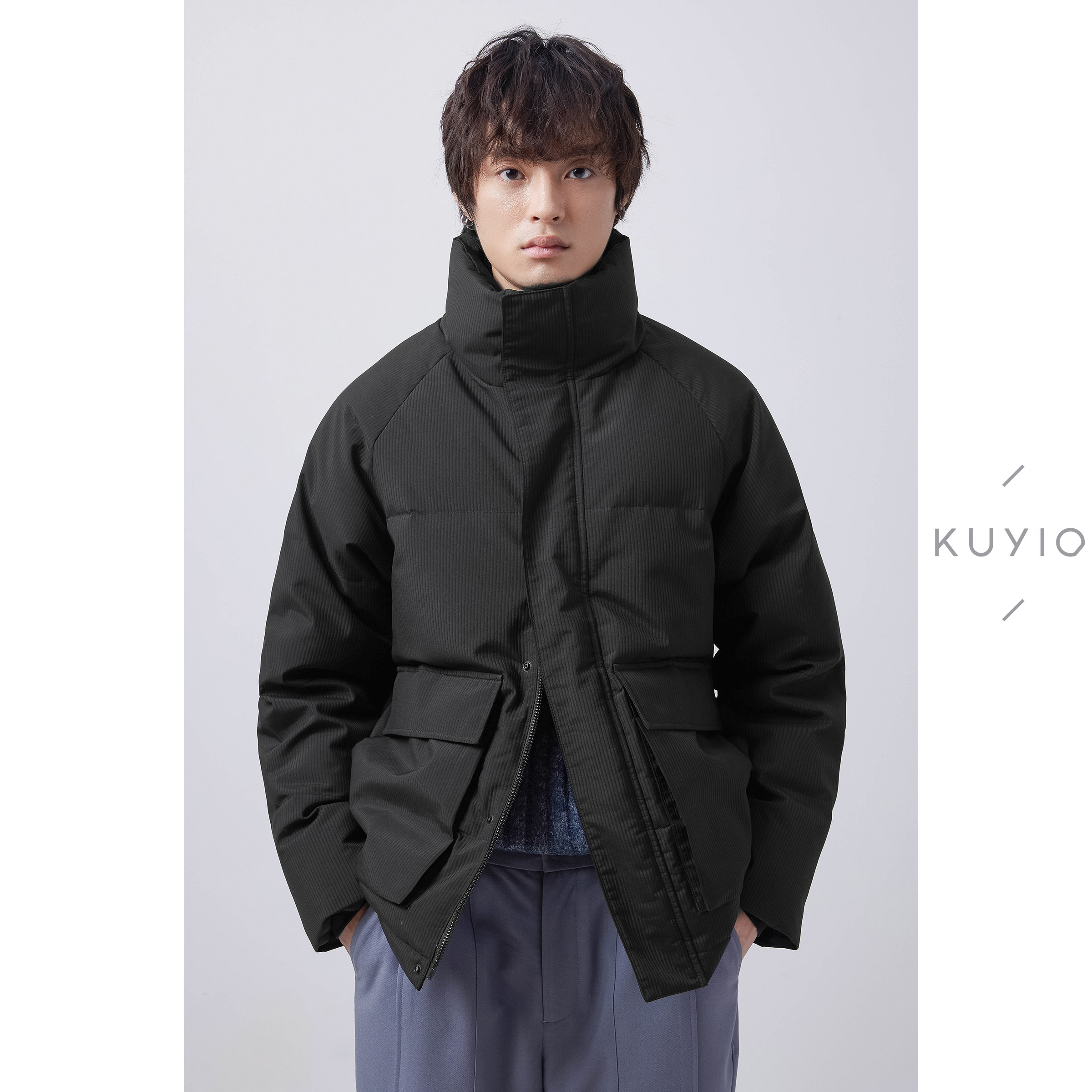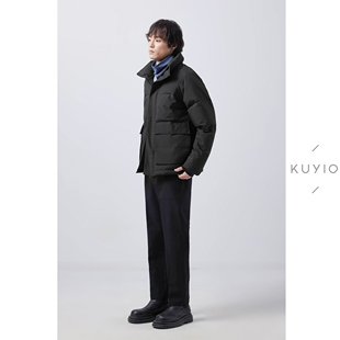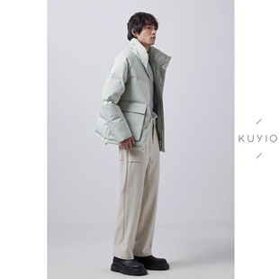 Y05 抗污防泼水立领重磅90绒羽绒服外套男 KUYIOU 定织泡泡纱肌理