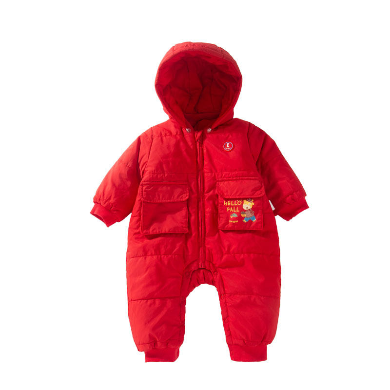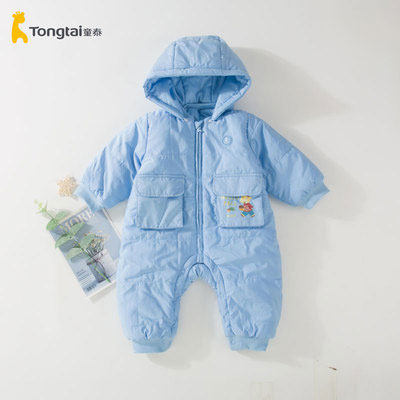 童泰秋冬新款 3岁棉服外出哈衣活帽可拆609B 加厚闭裆连体男女宝1