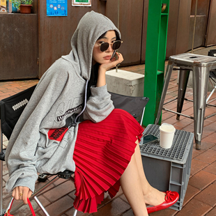 美拉德穿搭高腰棕色a字半身裙女大码 胖mm遮肚藏肉百褶显瘦长裙冬