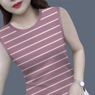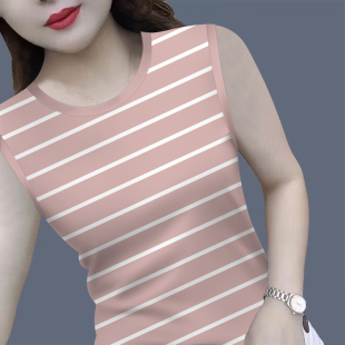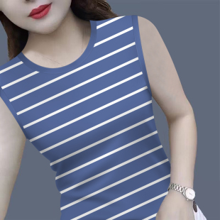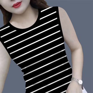 宽松无袖 新款 背心女中年妈妈 洋气外穿显瘦条纹T恤女夏季 休闲时尚