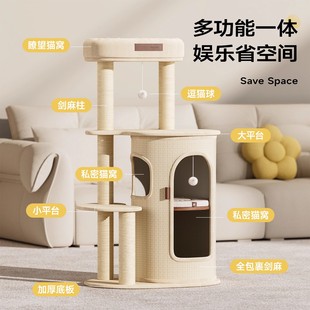 HOOPET猫爬架家用小户型不占地猫抓板猫窝一体多层剑麻桶攀爬架子