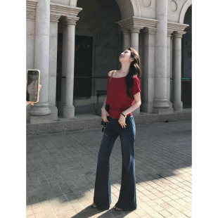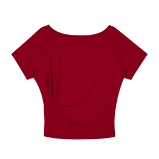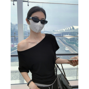 一字肩T恤女宽松设计感露肩斜肩上衣 气质短袖 MULVAN 心动至上