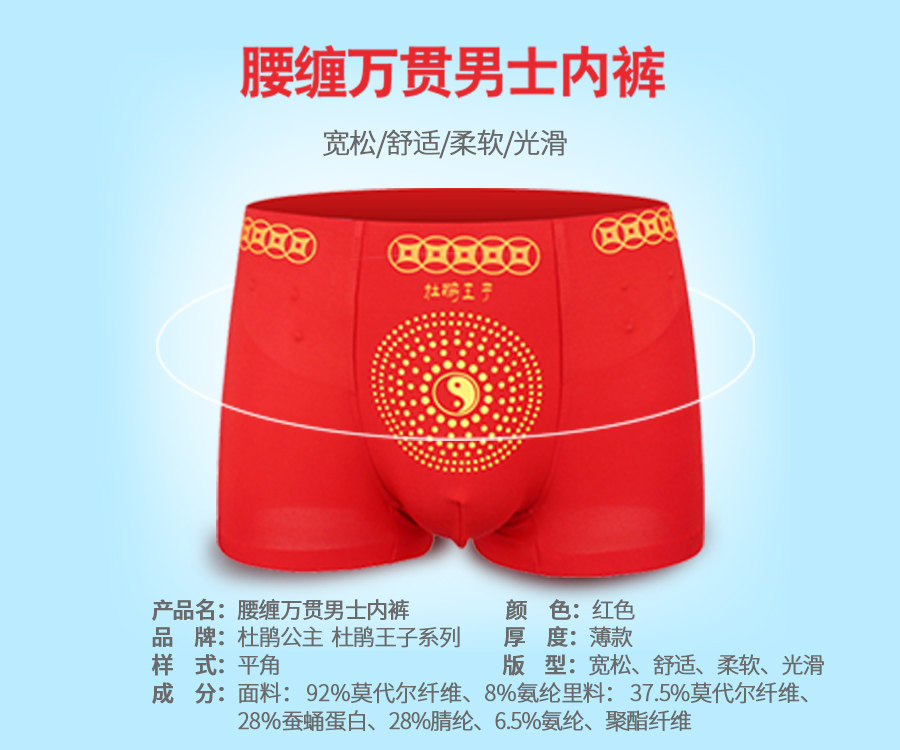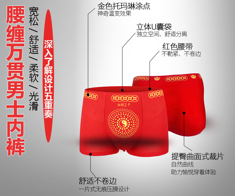 改善前列腺抑菌舒适透气无痕 调理潮湿功能行内裤 腰缠万贯男士 内裤