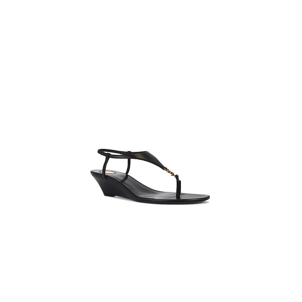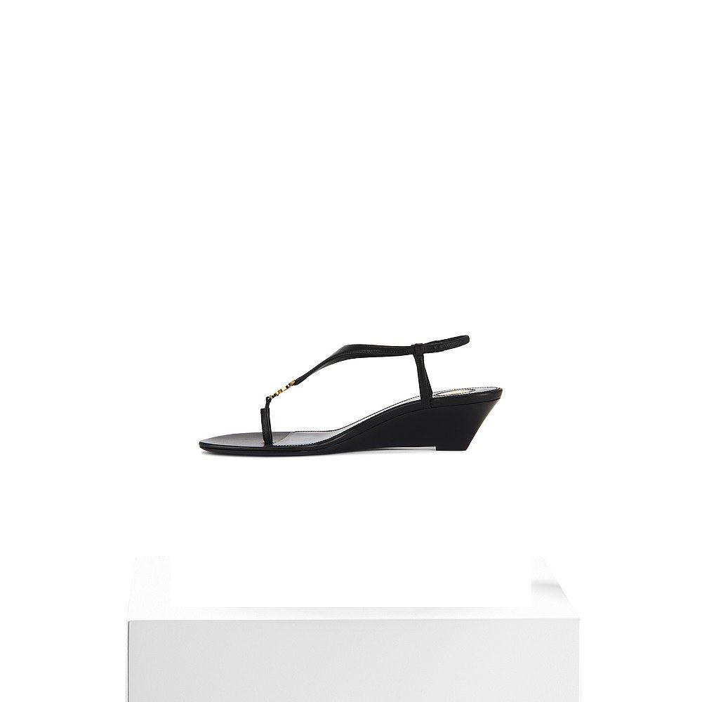 香港直邮潮奢 女士 Saint 圣罗兰 徽标图案坡跟凉 Laurent 1h可退