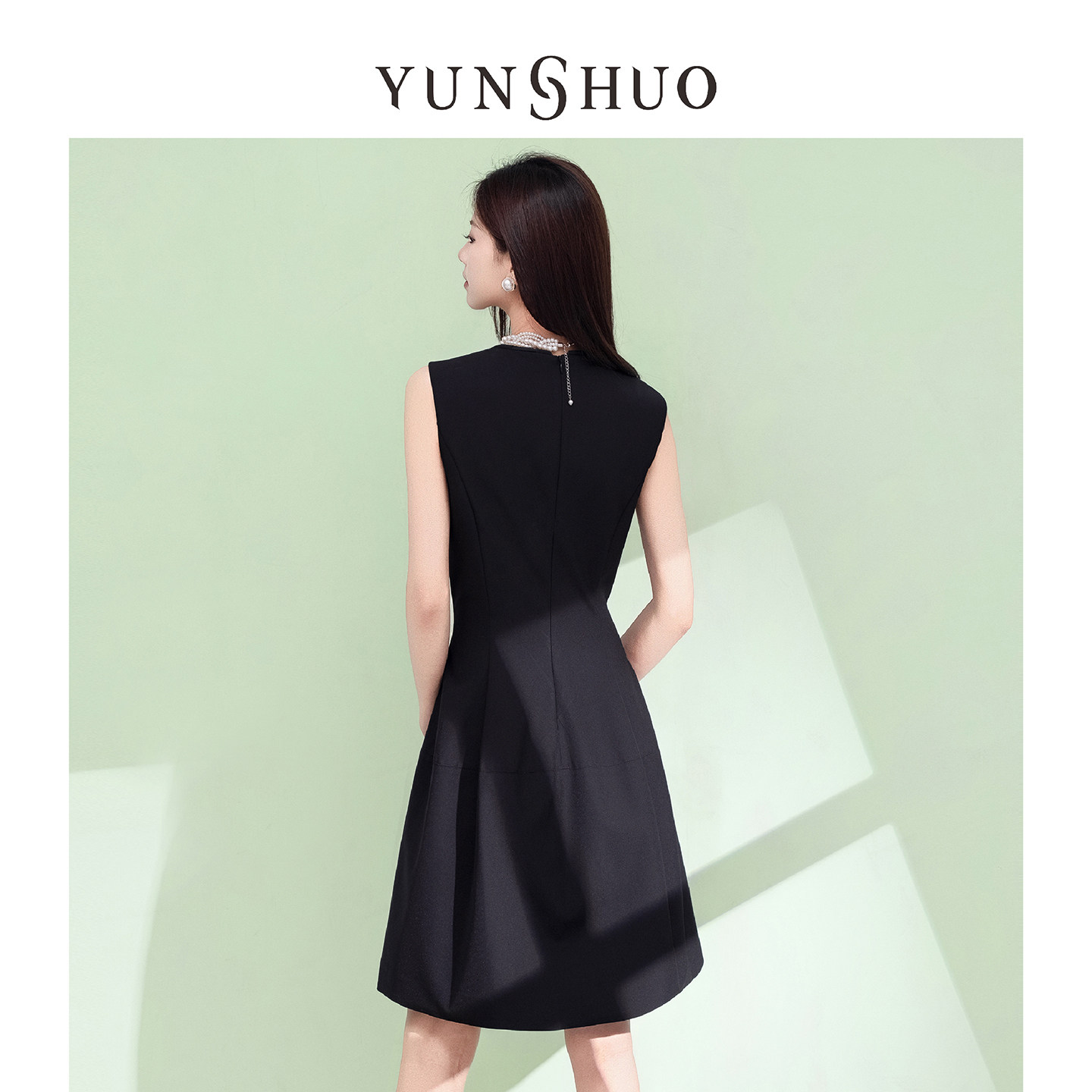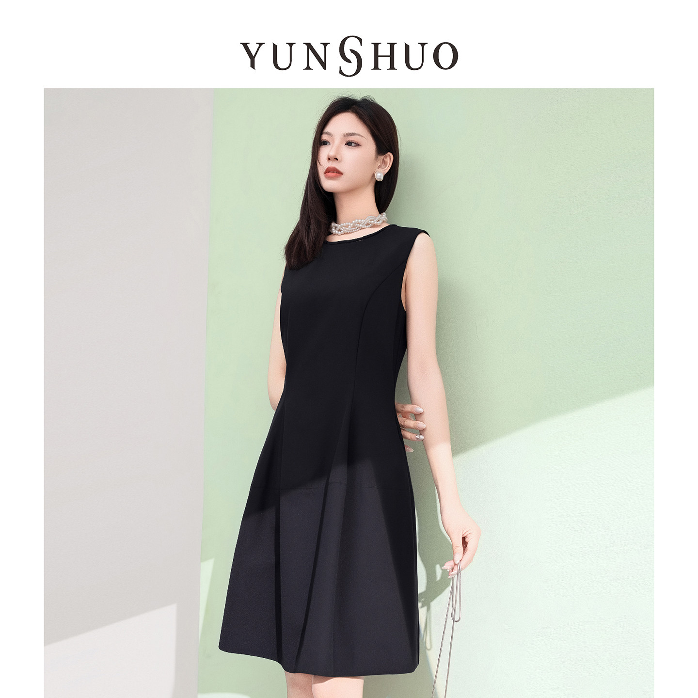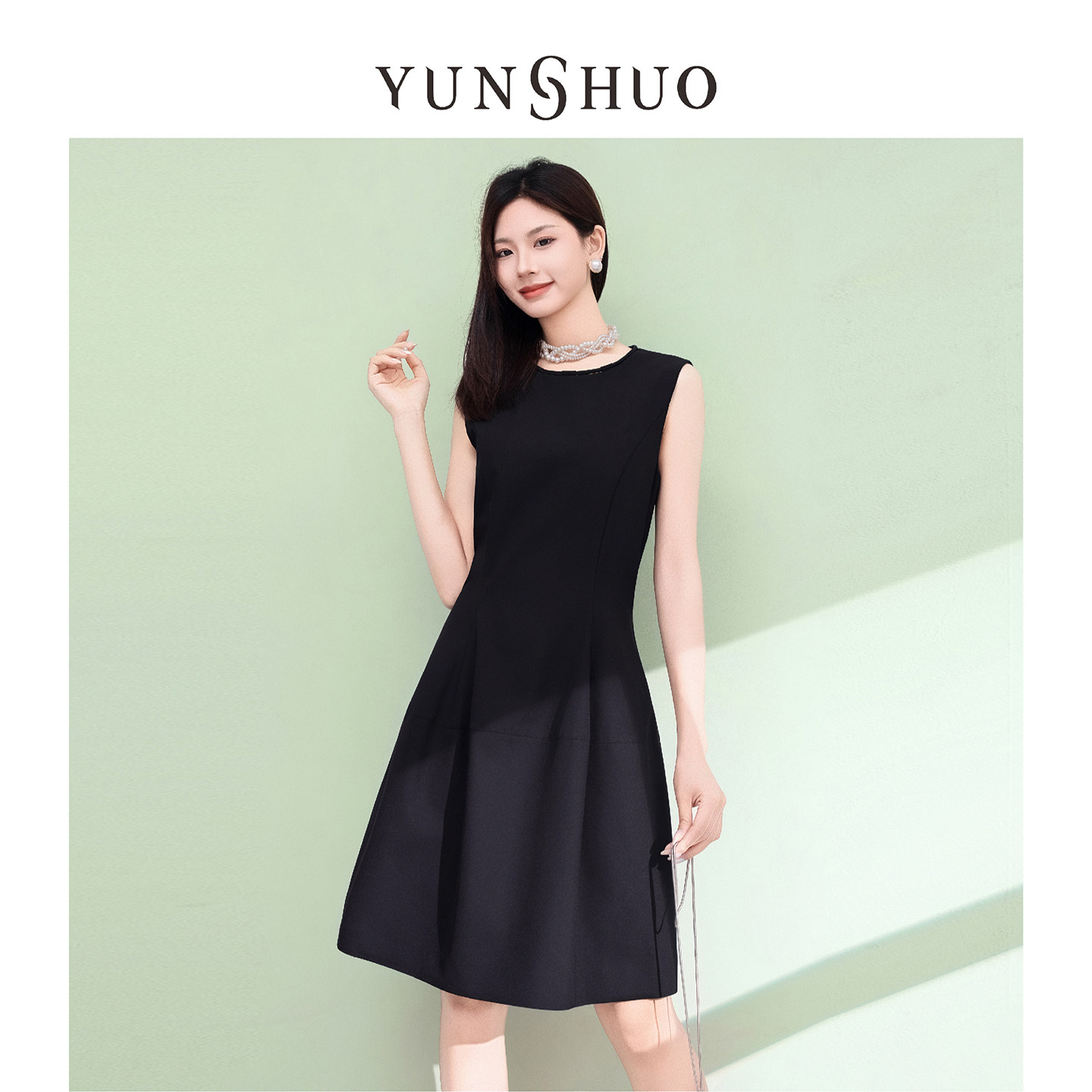 允硕新品 miu系黑色圆领气质伞裙高腰遮胯轻奢连衣裙565072 时尚