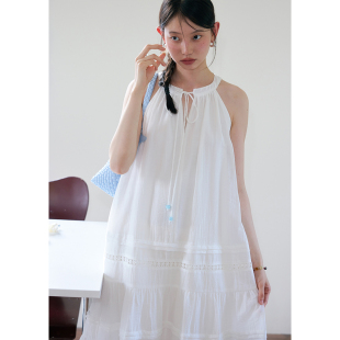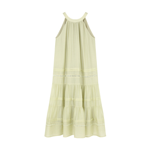 裙子夏季 长款 长裙 多层拼接花边绿色挂脖连衣裙女无袖 BLUEerror