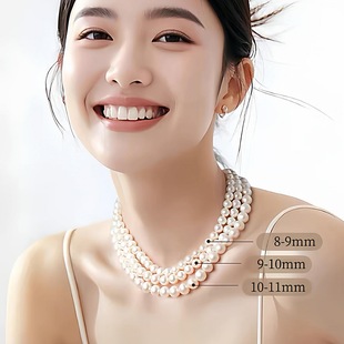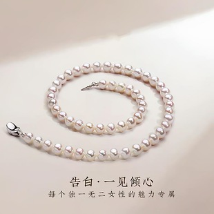 诸暨淡水珍珠项链女S925银近圆强光全珠链高级感气质颈链节日礼物