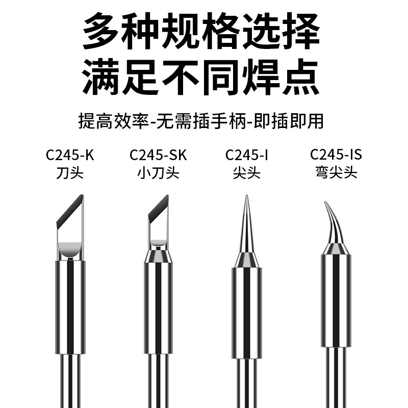 鹿仙子C245烙铁头一体插拔式 发热芯C115直尖头通用手柄替换焊咀