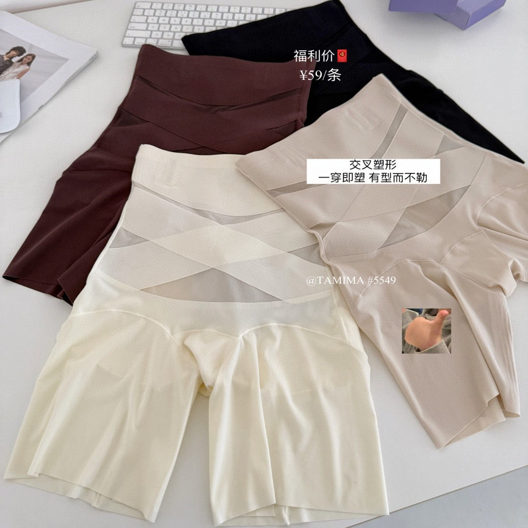 三合一收小肚子产后平角内裤 交叉塑形轻压收腹提臀裤 无痕高腰薄款