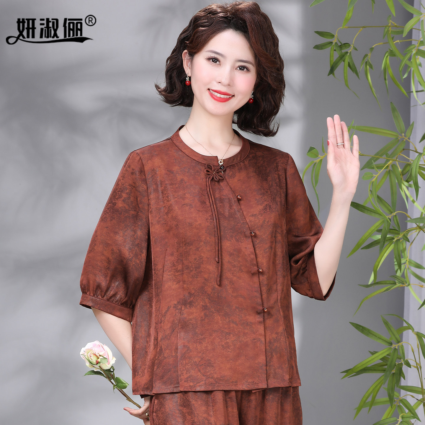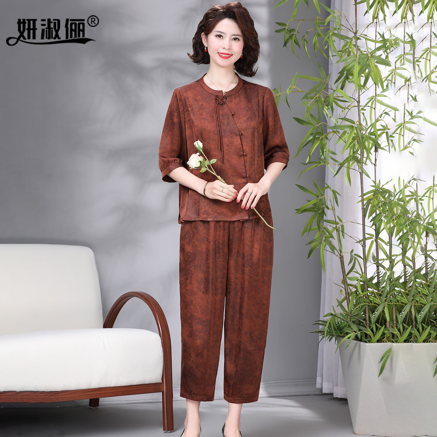 喜庆套装 子中老年妈妈新中式 高端品牌洋气上衣裤 贵夫人两件套夏季