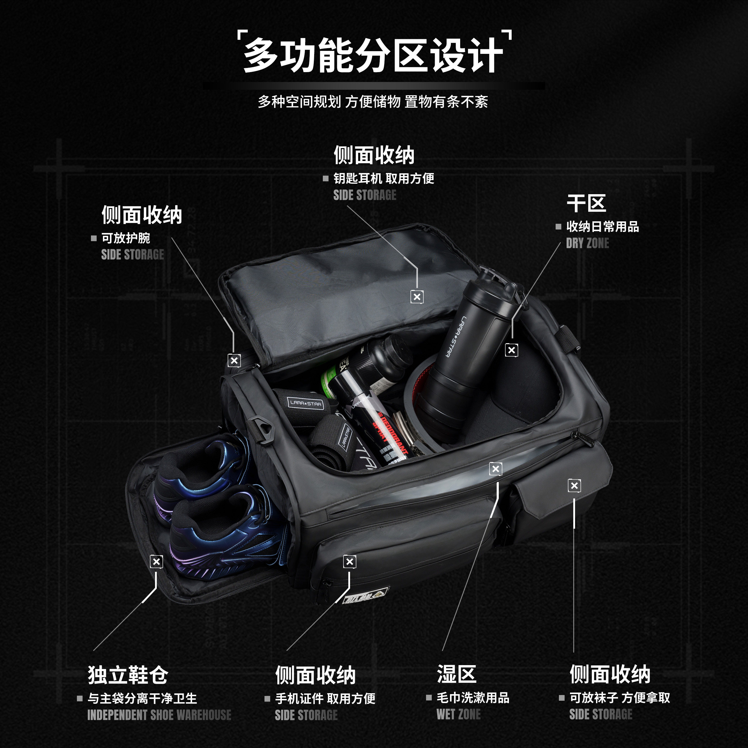劳拉之星LS1515全防水肌能包耐脏多功能干湿分离运动健身通勤户外