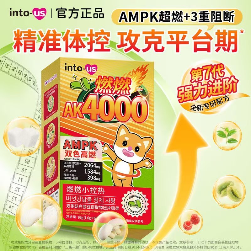 intous燃燃小控热AK4000白芸豆阻断剂碳脂肪大餐膳食纤维压片糖果