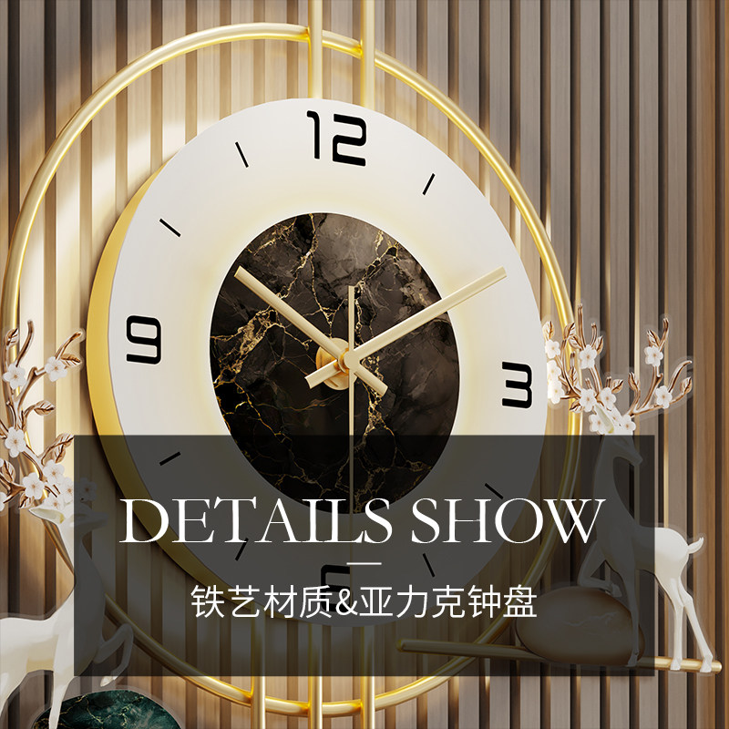 高级感木格栅装 客厅挂画带时钟挂墙 饰画钟表挂钟创意轻奢2025新款
