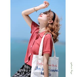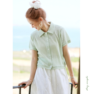 夏透气上衣 T恤女2026新款 花吉B989薄荷绿翻领宽松法式 森系短袖