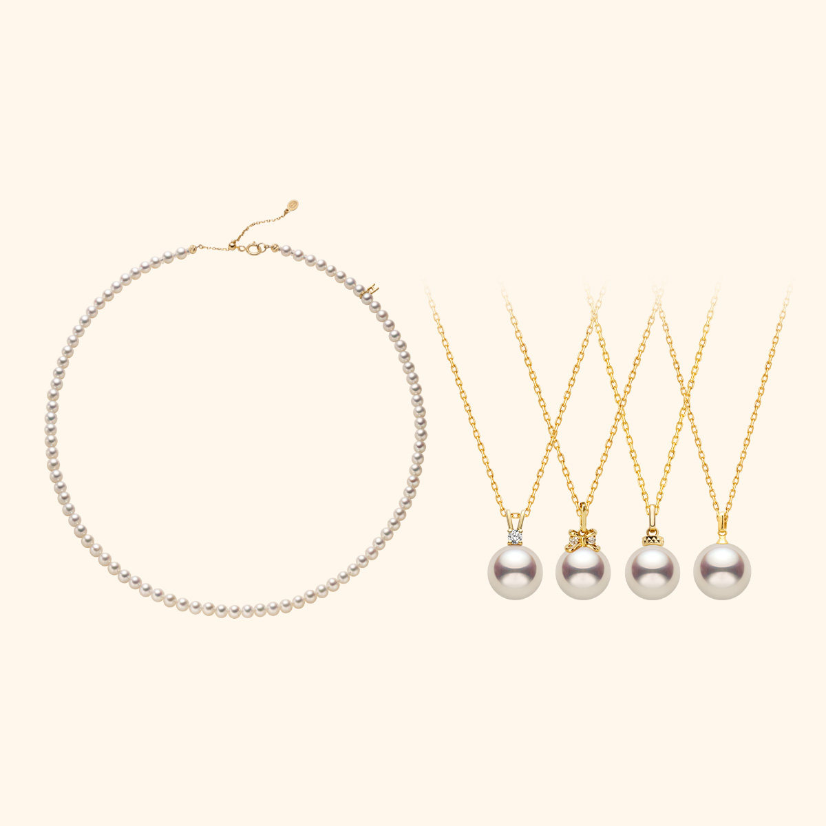HELAS赫拉欧若拉淡水串珠Akoya海水珍珠项链18K金钻石吊坠