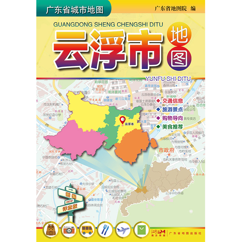 约105 广东省地图出版 75cm 旅游景点购物导向详查版 社 梅州市交通游览指南地图折叠便携 云浮市地图交通游览图