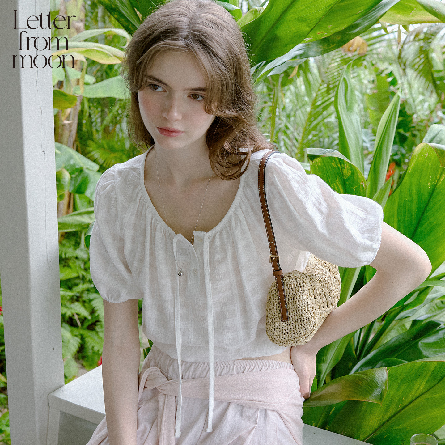 from 休闲宽松短袖 moon深U领收腰短款 女2025年夏新款 衬衫 Letter