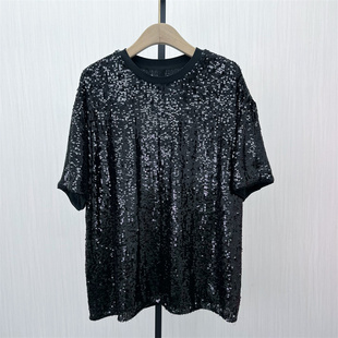 T恤女设计感小众款 艾 亮片短袖 新品 宽松慵懒上衣359 2025夏季