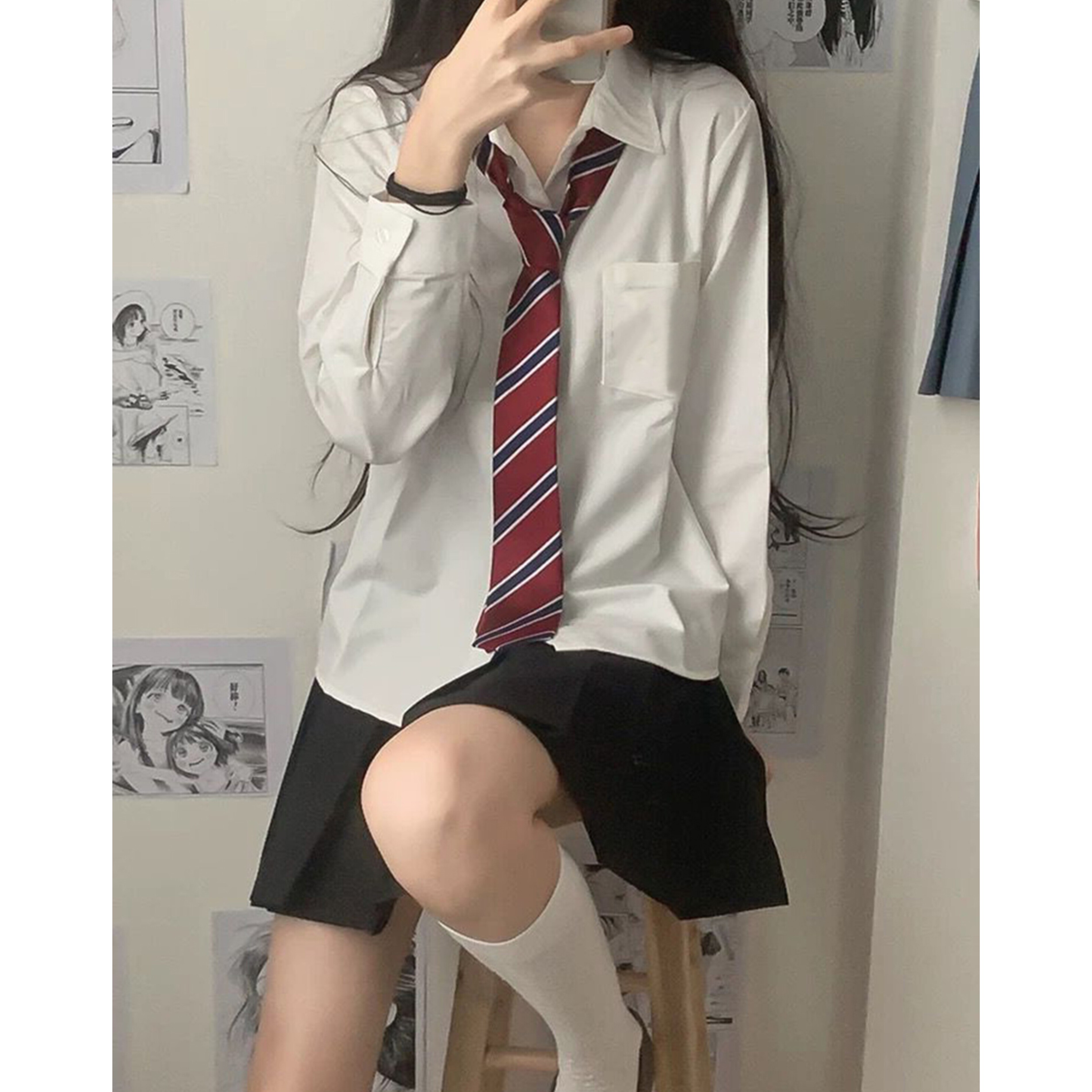 上衣套装 jk制服基础款 衬衣内搭打底短袖 女日系学院风白色长袖 衬衫