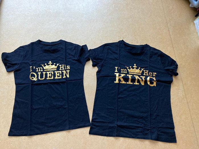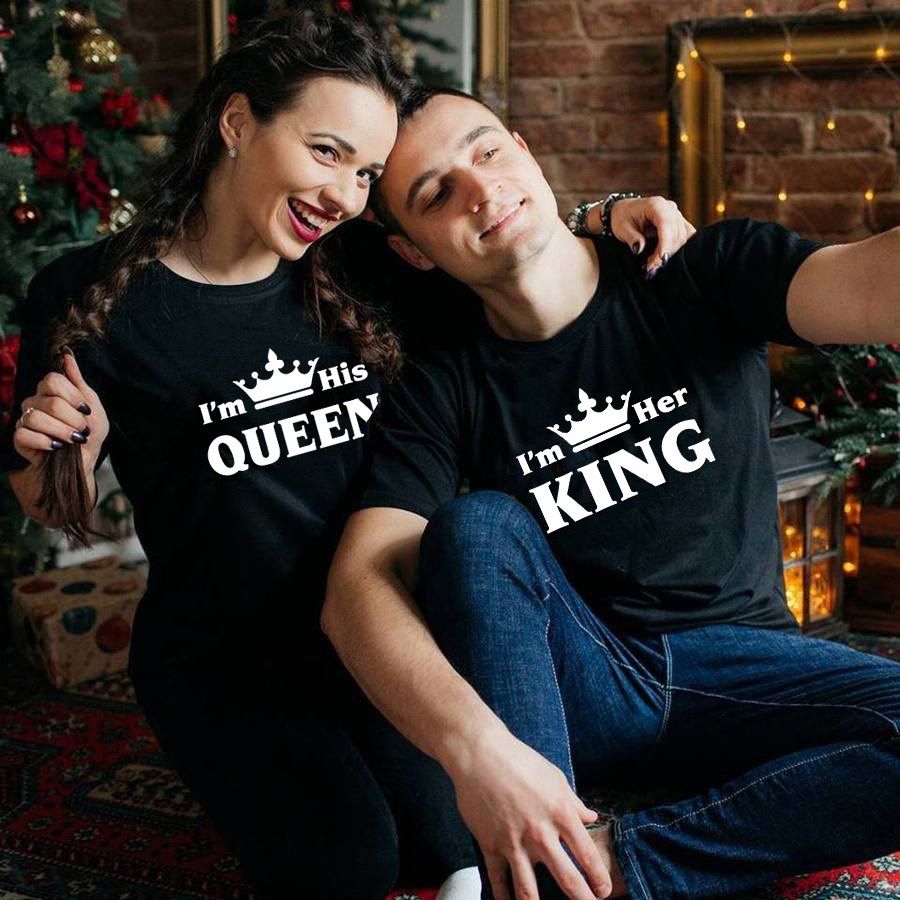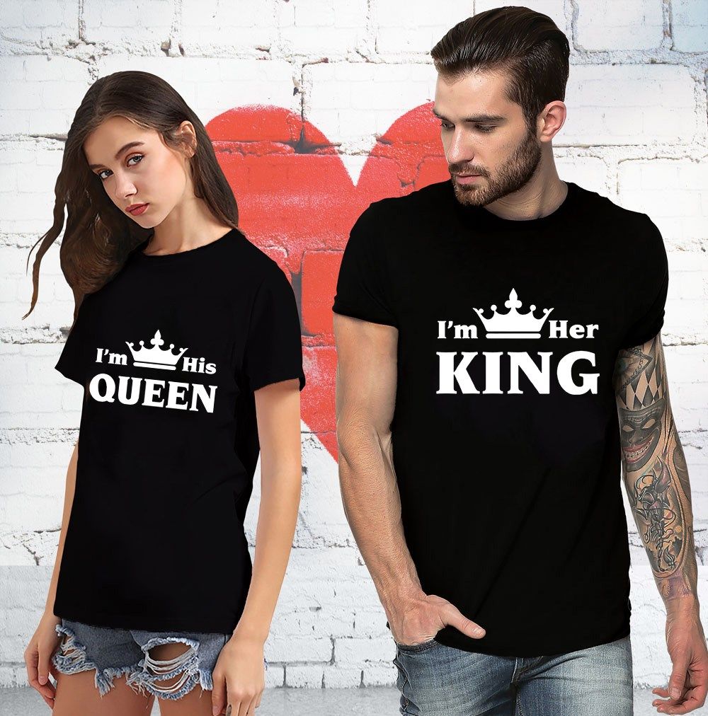 Her Tees Size Couple Crown King Queen HIS shirt Plus Cotton