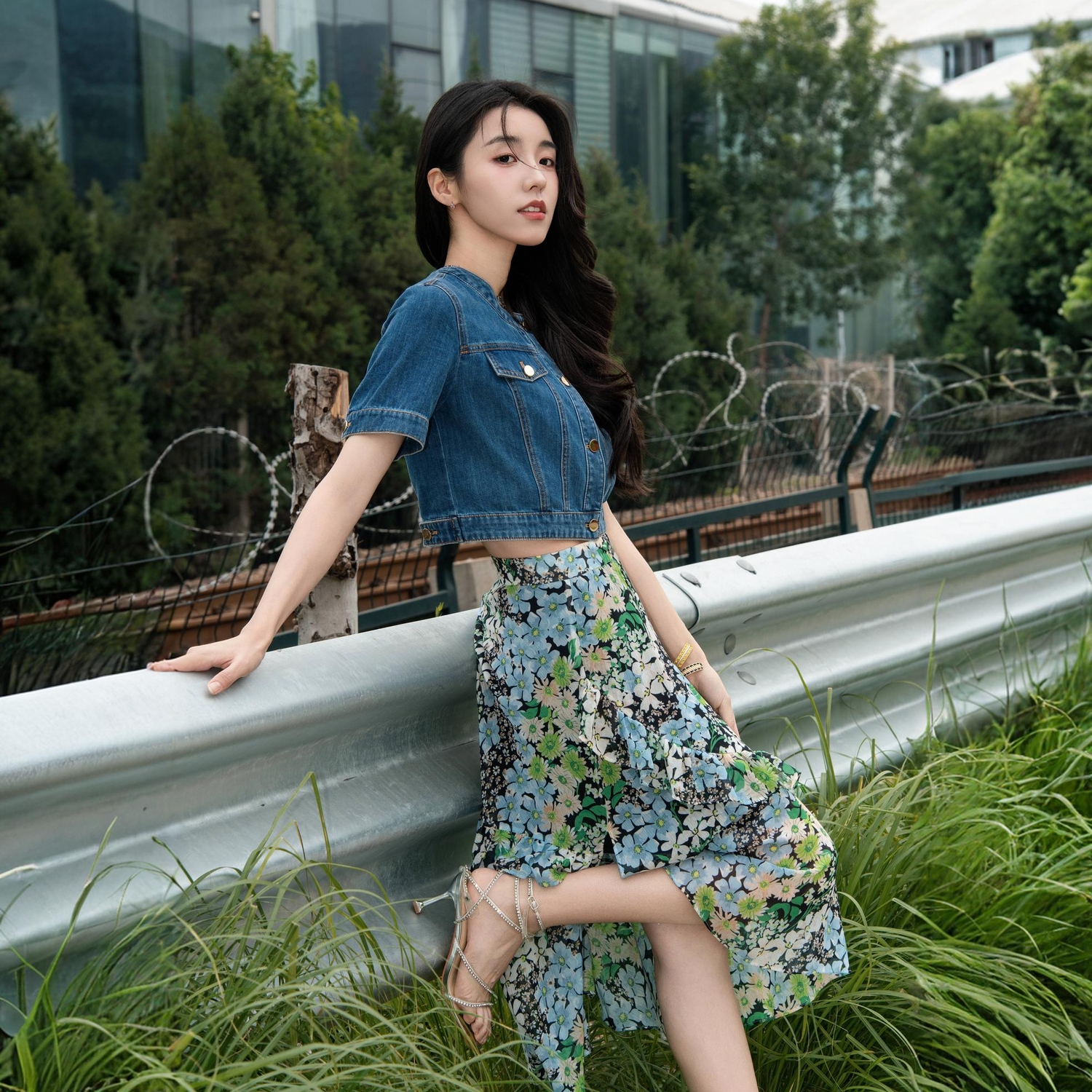 莱茵福莱尔半身裙女夏新款 a字薄纱碎花高腰不规则鱼尾裙薄款