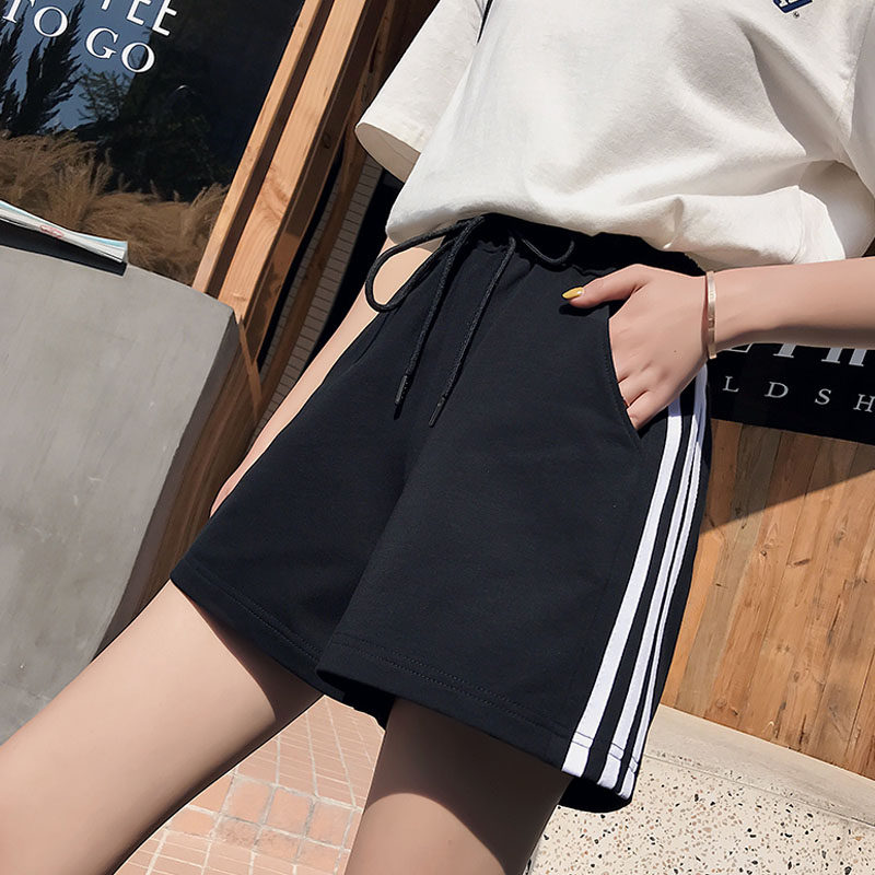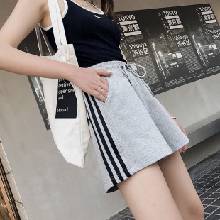 女2025夏季 五分裤 薄款 显瘦阔腿中裤 子 宽松纯棉休闲沙滩裤 运动短裤