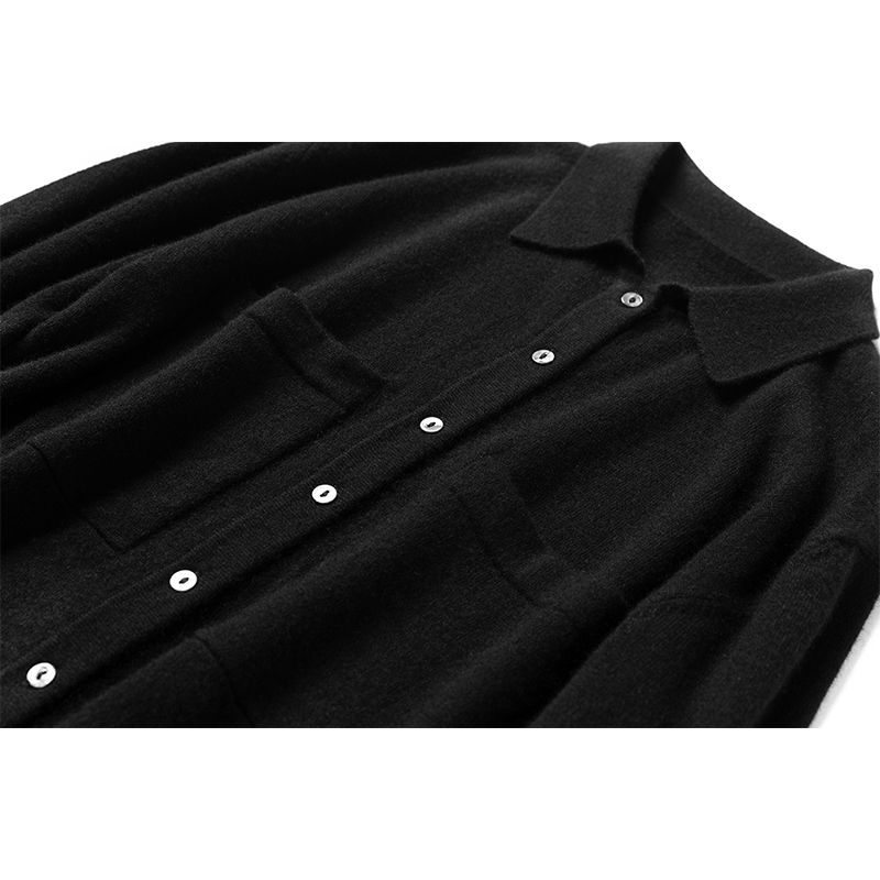 羊绒开衫 高段位气质 式 衬衫 纯羊绒毛衣女宽松秋冬外套 口袋排扣袖