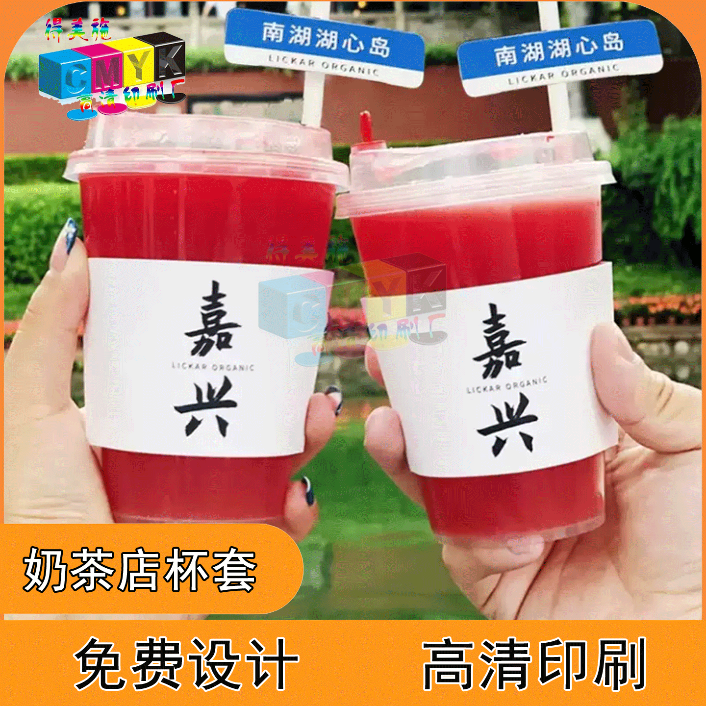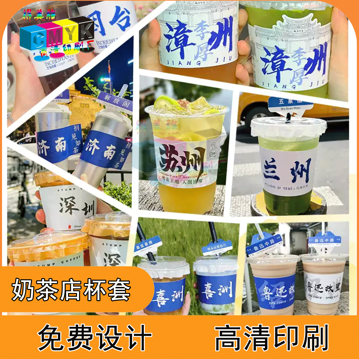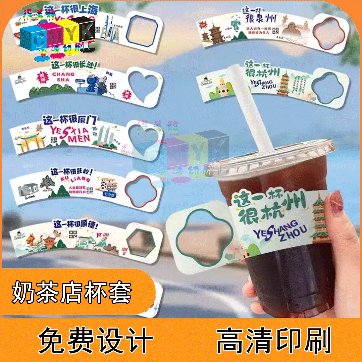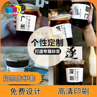 定制咖啡馆网红标语白卡纸杯套袋装 咖啡白色PVC防水贴纸设计印刷